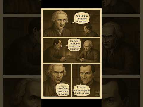 Cette fiction graphique imagine un échange entre Nicolas Machiavel et Jean-Jacques Rousseau, au sujet de la célèbre phrase :